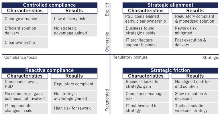 Most institutions started PSD2 in the lower-left quadrant of the Regulatory Response Matrix.